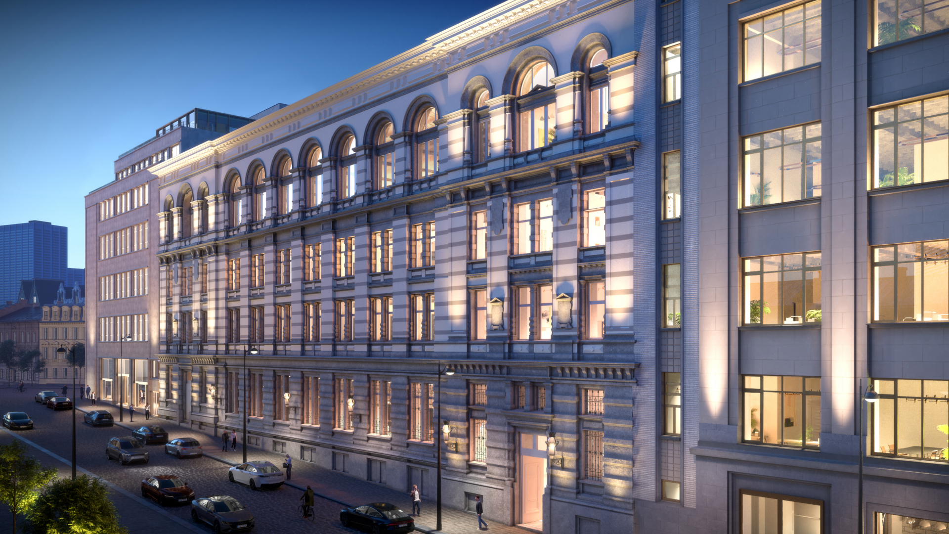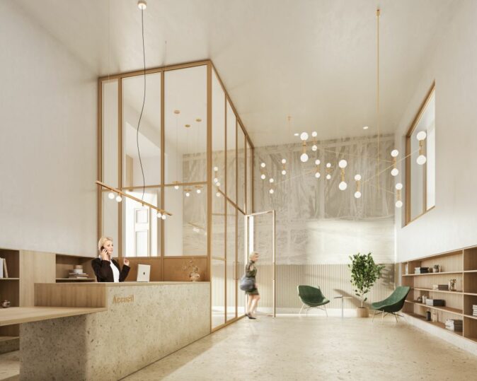 Un socle commercial (2 000 m²) sera créé au niveau du rez-dechaussée de la rue Lebeau, invitant les passants à descendre depuis le Sablon vers le bas de la ville. L’ancien Hôtel Central Téléphonique, construit en 1895 et couvrant un quart de la superficie du complexe, sera rénové pour devenir un immeuble de bureaux moderne et polyvalent (25 470 m²). Le bâtiment retrouvera sa grandeur d’origine tout en conservant ses magnifiques façades et ses cages d’escaliers historiques.