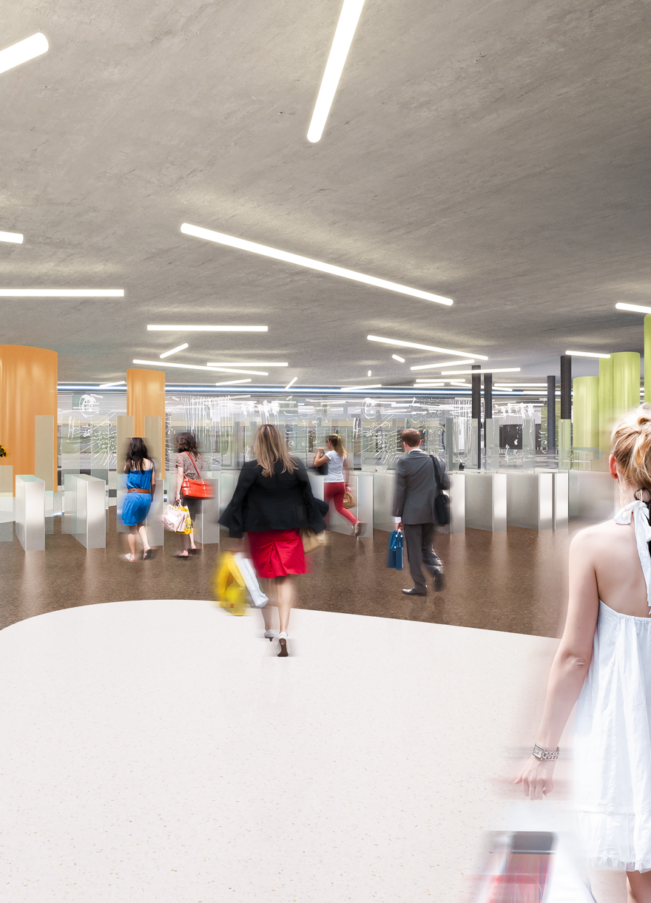 • clarifier les flux de circulations entre les quais et les niveaux par la transparence et la couleur,