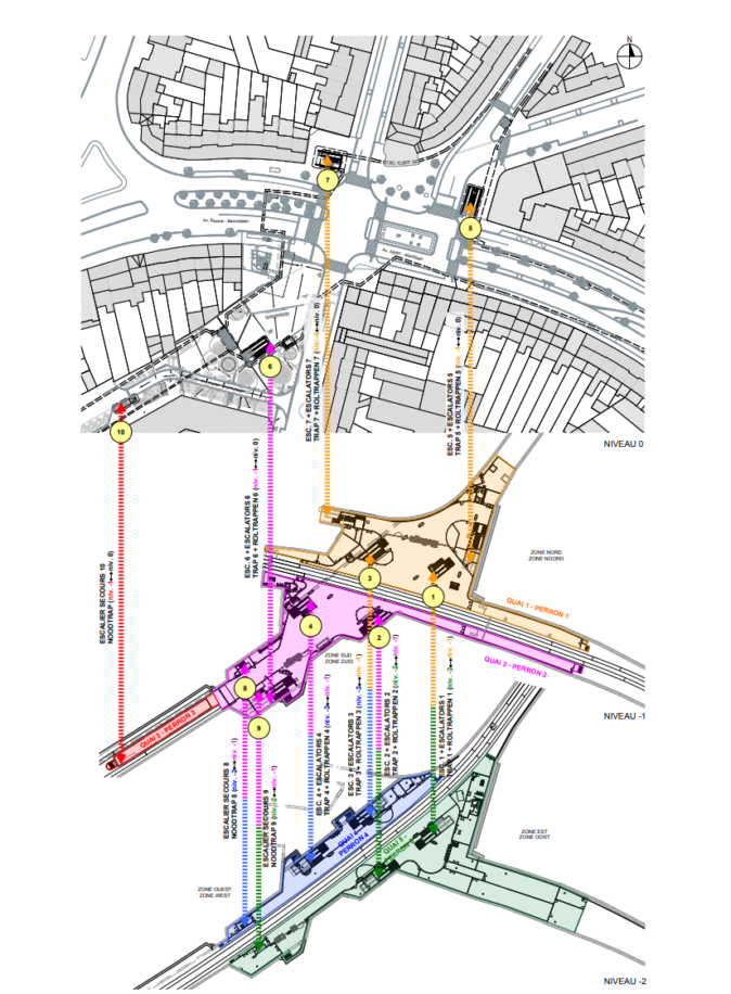 • l’intégration de 5 nouveaux ascenseurs reliant les différents niveaux et la création de nouveaux édicules extérieurs sur la place Albert,